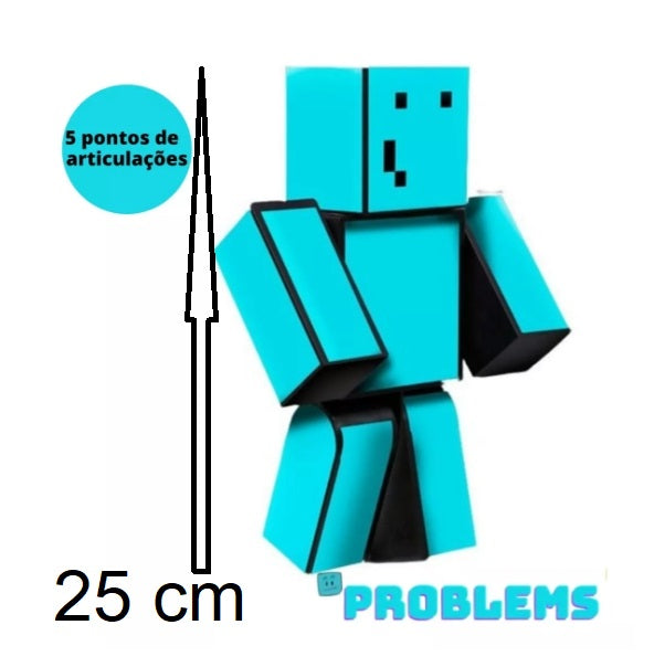 Para os fãs da Turma do Problems, este boneco inspirado no mundo de Minecraft é imperdível! Com 25 cm de altura, ele é grande, cheio de detalhes e feito para ser o companheiro ideal nas suas aventuras imaginárias. Seja para brincar, decorar o quarto ou presentear alguém especial, este boneco é a escolha perfeita!